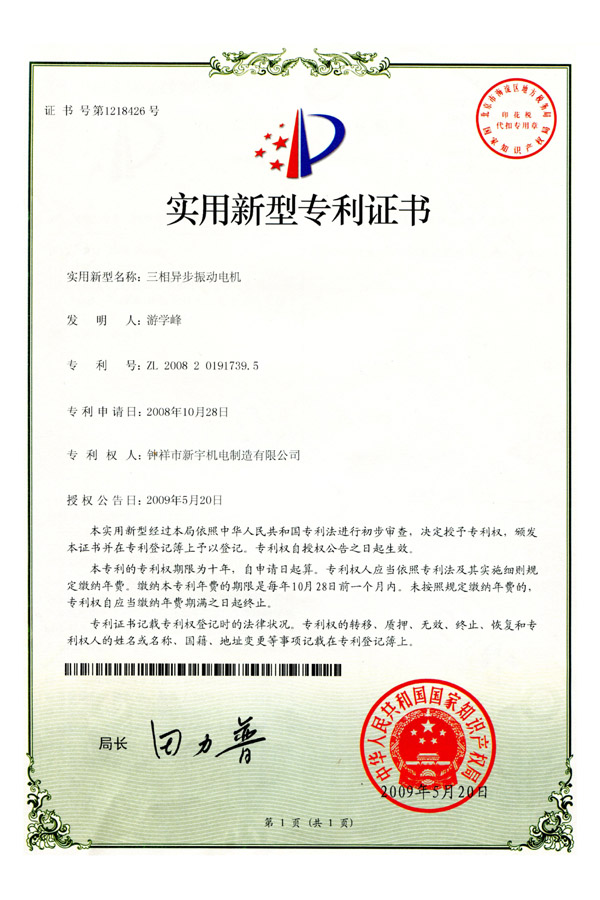 鐘祥新宇機(jī)電制造股份有限公司——中國(guó)大型振動(dòng)電機(jī)生產(chǎn)基地!聯(lián)系人:宋文耀(經(jīng)理)電話:0724-4231097 13607265083