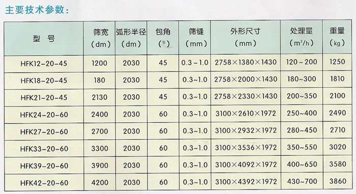 HFK型可翻轉(zhuǎn)弧形篩主要特點: