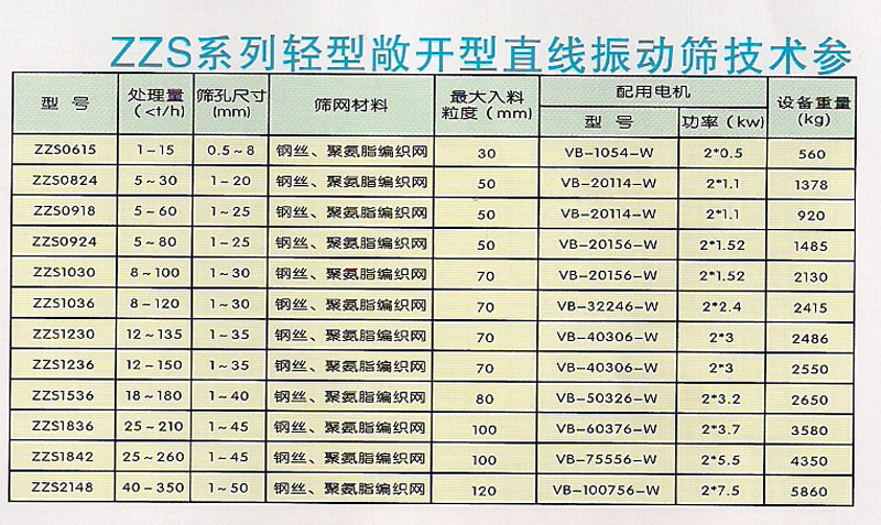 ZZS系列直線(xiàn)振動(dòng)篩是一種以振動(dòng)電機(jī)為激振源的新型振動(dòng)篩分設(shè)備,開(kāi)發(fā)有輕型篩和重型高效篩兩大系列,其中輕型篩通常是水平安裝,且多采用編織篩網(wǎng),廣泛應(yīng)用于冶金、礦山、煤炭、化工、建材、耐火、食品加工等各行業(yè)對(duì)中、小顆粒物料及各種粉狀物料的分級(jí)、脫水、脫介;而重型高效篩一般采用5°-15°傾角安裝,且多采用篩板,廣泛應(yīng)用于冶金、礦山、煤炭、化工、建材、耐火等各行各業(yè)對(duì)大、中顆粒物料的分級(jí)。